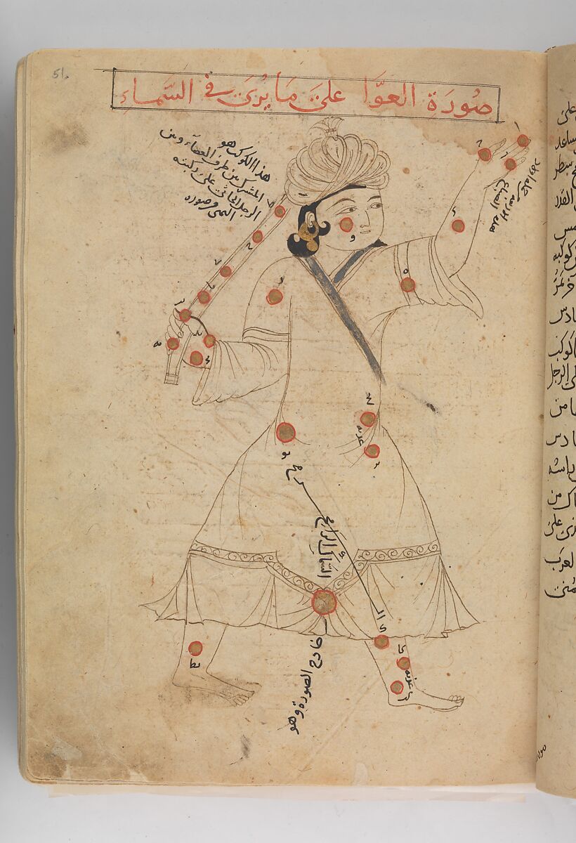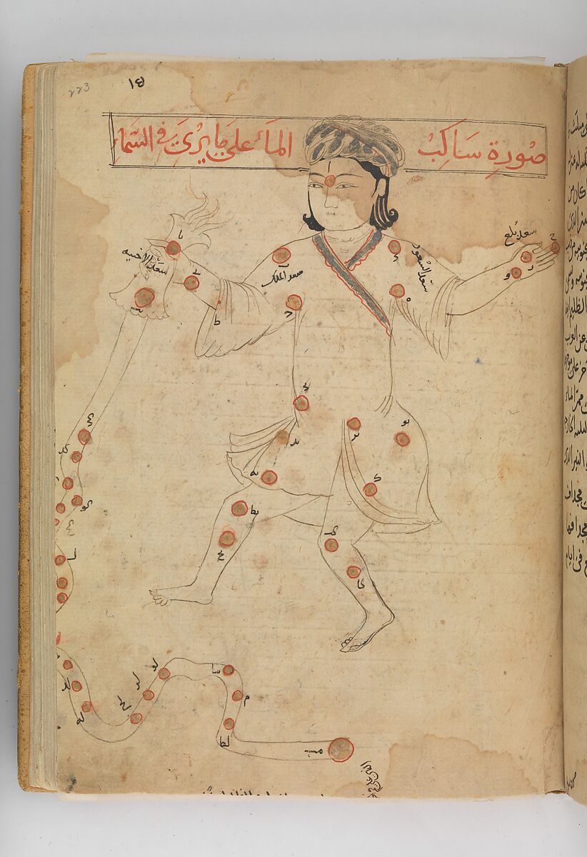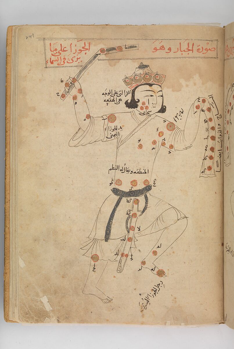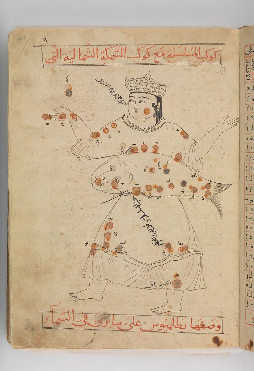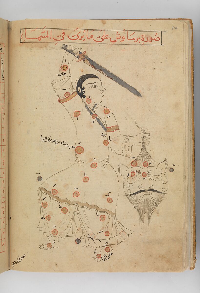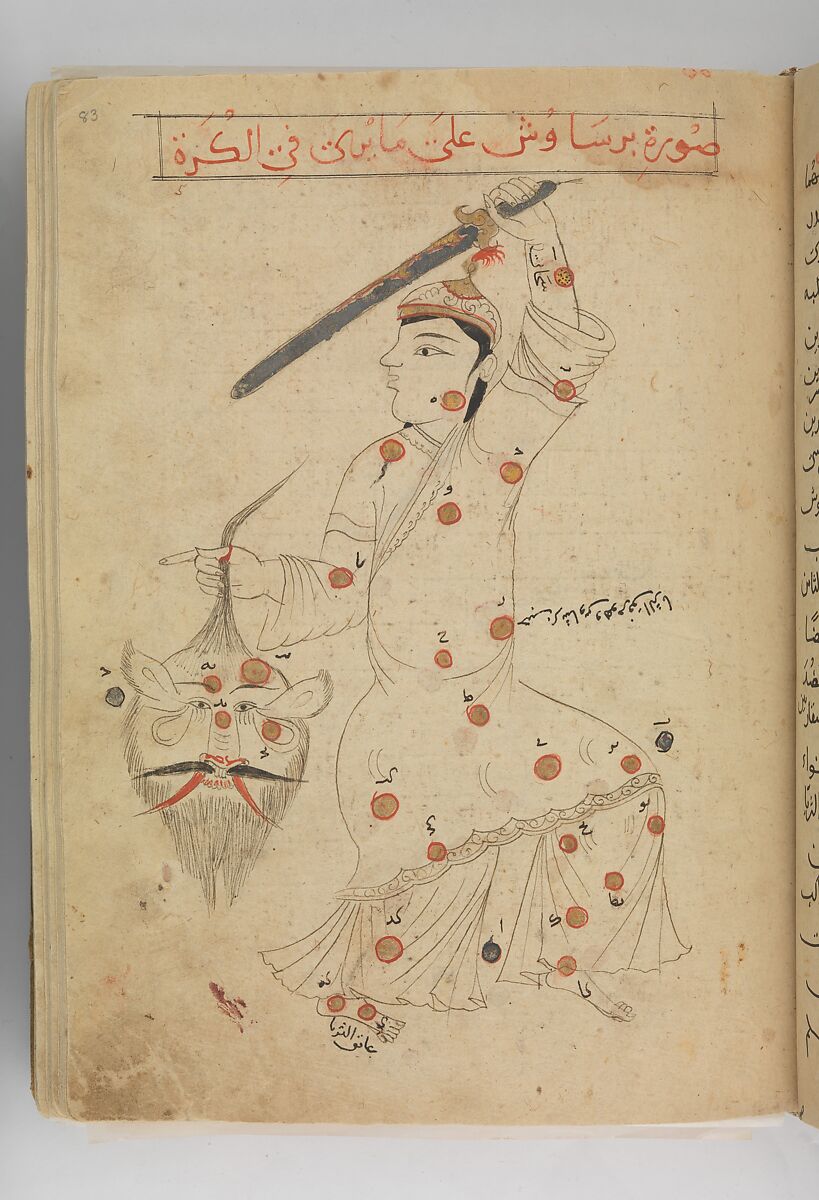 This book, based on the Almagest of the Greek astronomer Ptolemy, concerns the forty-eight constellations known as the Fixed Stars, which, according to the medieval conception of the universe, inhabited the eighth of the nine spheres surrounding the earth. The constellations each appear twice in mirror image, shown as observed from the earth and from the sky.