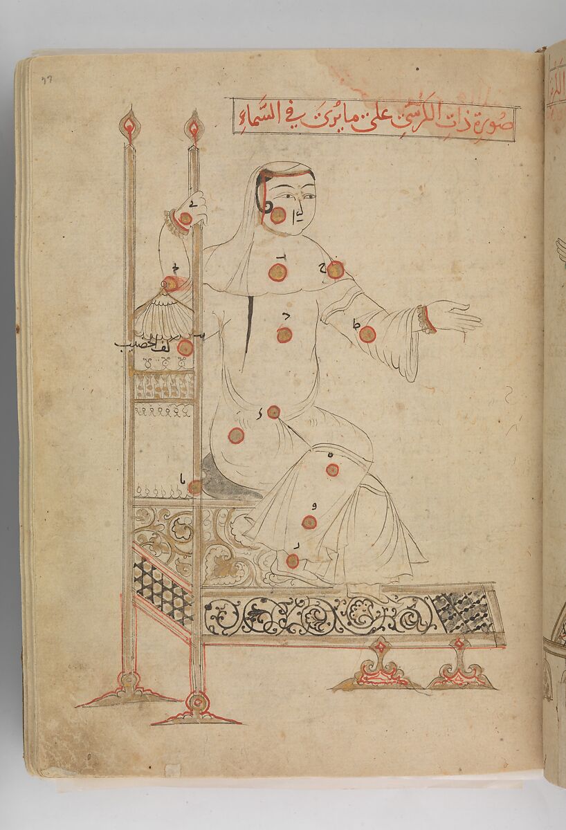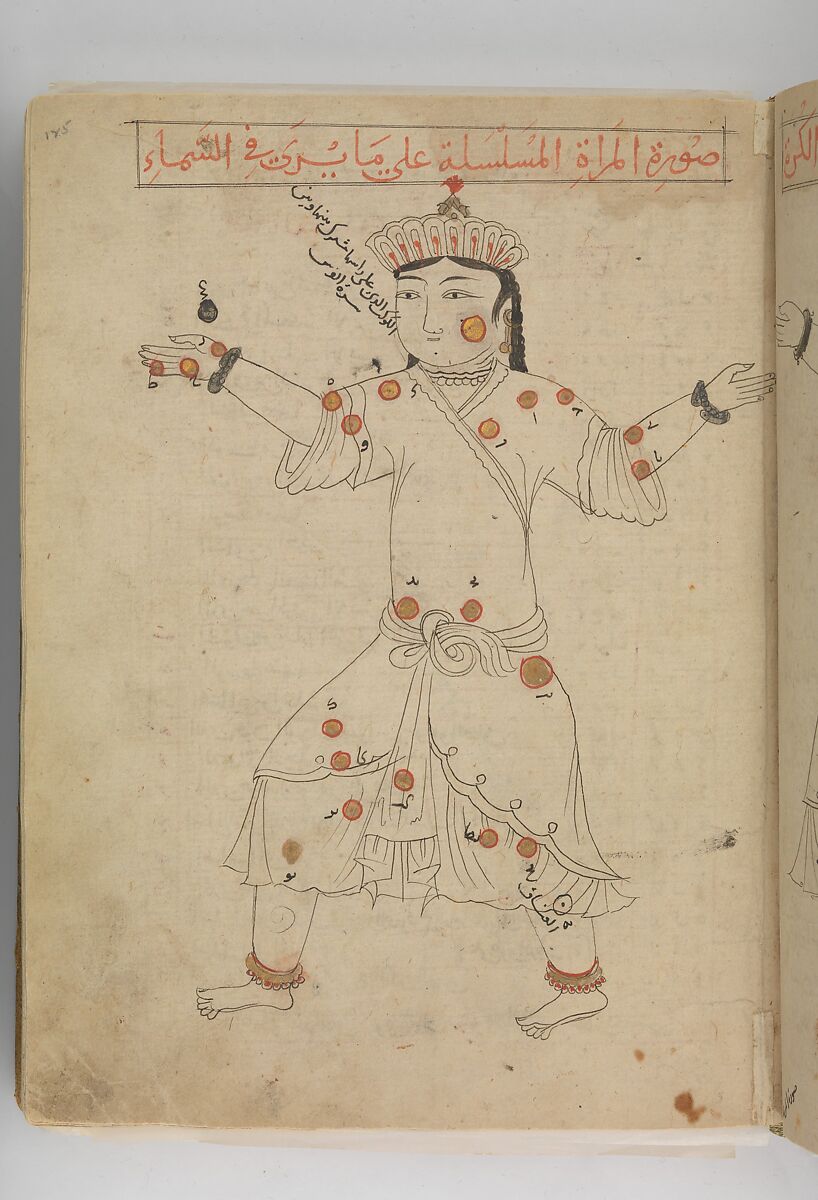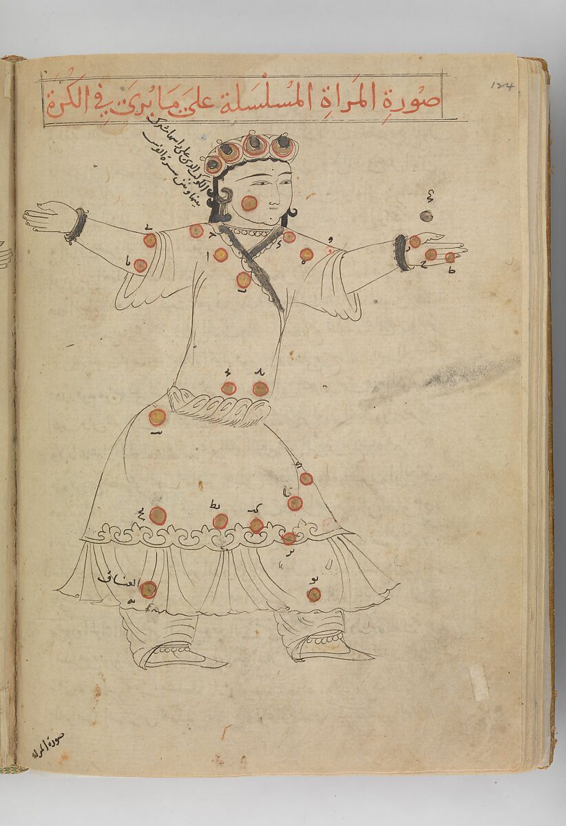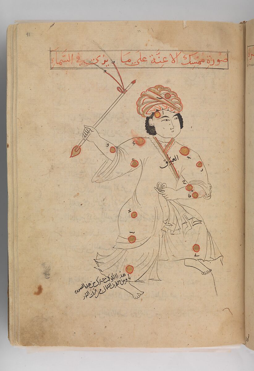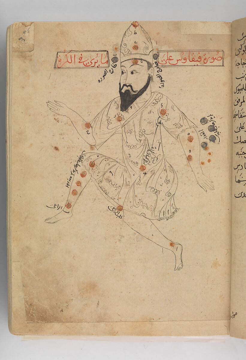 This book, based on the Almagest of the Greek astronomer Ptolemy, concerns the forty-eight constellations known as the Fixed Stars, which, according to the medieval conception of the universe, inhabited the eighth of the nine spheres surrounding the earth. The constellations each appear twice in mirror image, shown as observed from the earth and from the sky.