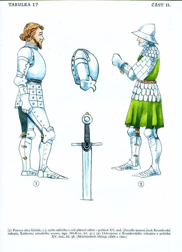 Source: Kroie, zbroi a zbrane doby predhusitske a husitske (E.Wagner, Z.Drobna, J.Dubik, Nase Vojsko, Praha, 1956) Costumes, weapons and armour of the pre-Hussite and Hussite periods.