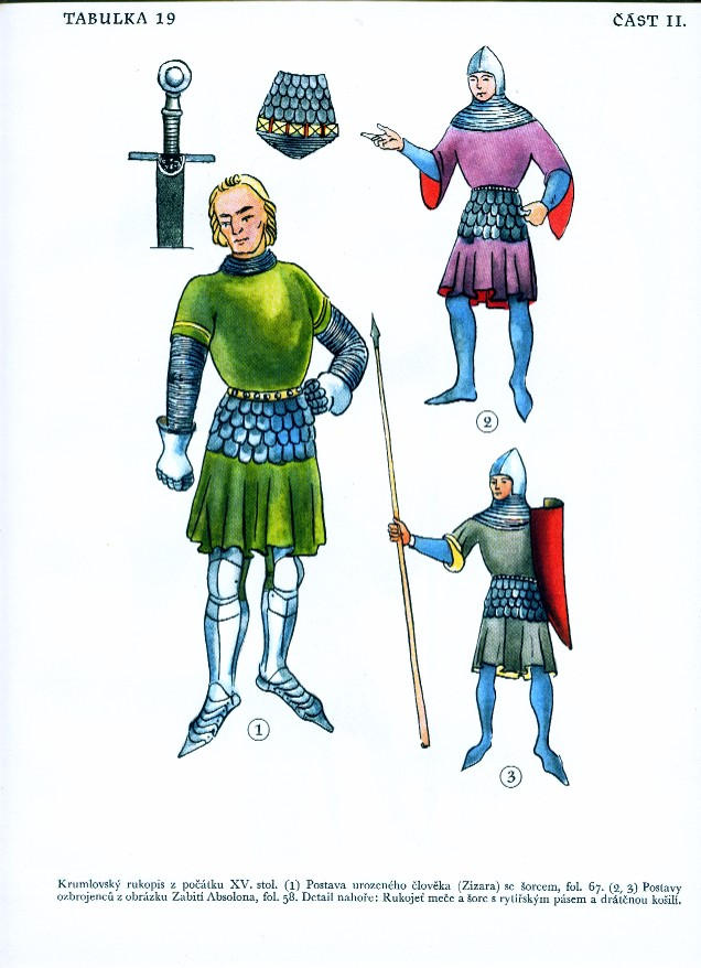 Source: Kroie, zbroi a zbrane doby predhusitske a husitske (E.Wagner, Z.Drobna, J.Dubik, Nase Vojsko, Praha, 1956) Costumes, weapons and armour of the pre-Hussite and Hussite periods.