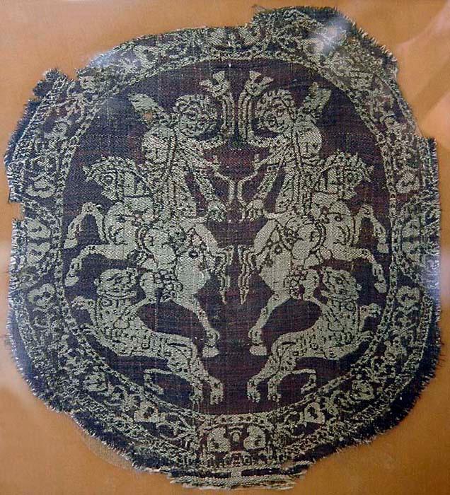 ![]() A larger detail of this Egyptian, Syrian or Arab Horse Archers on a Textile, Egypt or Syria, 7th-8th century, State Hermitage Museum, St Petersburg