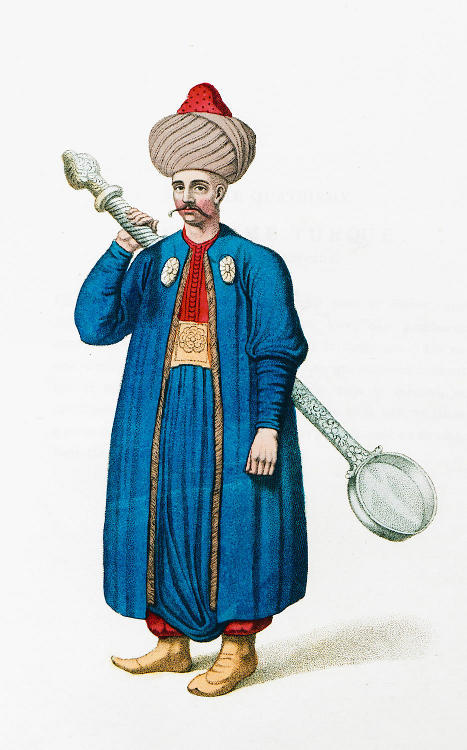 The Janissaries themselves, also, have a wooden spoon, with which they eat their pilàv, and which they wear in their caps instead of feathers ; and they as much look upon these as a part of the military dress, as an European would a sword.