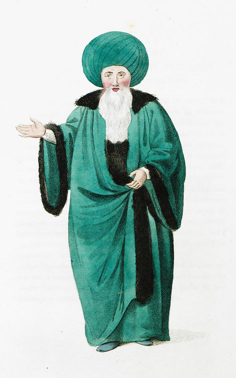 COSTUME OF TURKEY, ILLUSTRATED BY A SERIES OF ENGRAVINGS; WITH DESCRIPTIONS IN ENGLISH AND FRENCH Plate VI THE CHIEF OF THE ULEMAS, OR PROFESSORS OF THE LAW. Click for a larger image. ![]() Previous Next The Chief of the Ulemas, or professors of the law. ALL, who make the law a profession in Turkey, are distinguished, at least when they have any office, by the largeness of their turbans. There are regular gradations, by which they must rise ; and no one can hold a place of any importance, unless he has first filled an inferior office. They must first have been Sohtas, or students ; then Muderris, or chief of a college ; after this they become Naibs, or clerks to some Cadi or judge ; then Cadis, Mollohs, or superior judges, is the next step. Of these there are various ranks till they may become judge of Mecca. They then have a right to be Istambol Effendissi, or chief officer of the police in Constantinople, and last of all arrive at the grand dignity of Kadiaskar, or superior judge of Europe and Asia. It is not, however, to be imagined, but that these different degrees are frequently passed over by those who possess either rank, power, or interest. And, indeed, there are some particular families, who almost assume a right, by a kind of inheritance, or patrimony, to some of these high dignities. The Sultan can appoint them directly ; but even then the forms are so far complied with, that the person receives the commissions for all the inferior offices at the same time, that he does for the superior. This, however, sometimes causes great murmurs among the Ulemas, or professors of the law. Back to Illustrations after d'Alvimart in The Costume Of Turkey |