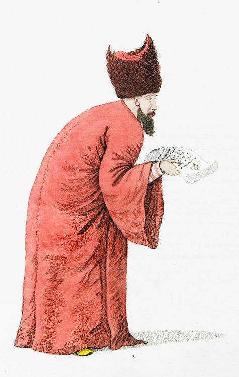 See an Interprète au divan imperial in an Album of Turkish Costume Paintings - NYPL Digital Collections, Presented to Alexander III, Tsar of Russia, 1867