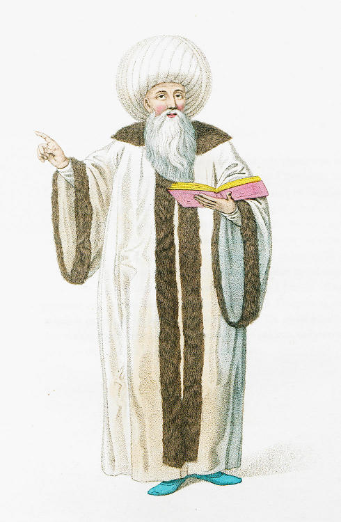 COSTUME OF TURKEY, ILLUSTRATED BY A SERIES OF ENGRAVINGS; WITH DESCRIPTIONS IN ENGLISH AND FRENCH. Plate XII THE MUFTI, OR CHIEF OF RELIGION. Click for a larger image. ![]() Previous Next The Mufti of Istanbul. In no part of the world have the ministers of religion more power than in Turkey, particularly the higher orders. In the grand Mufti, or Sheik-islam, is combined almost the supreme power of the law as well as of religion. On all questions of a doubtful nature he is consulted, even by the Sultan himself, who promulgates no law, does not declare war, or levy any tax, until it has received the Mufti’s sanction ; and his decisions are called fetfas. It is the Mufti who girds on his sabre at his coronation, reminding him at the same time of his duty to promote the welfare of religion. To counterbalance, however, this vast power of the Mufti, which would otherwise be equal to that of the Sultan, the latter is able to depose, banish, or even put the Mufti to death, should he displease him. Hence he is, too frequently, the mere slave of the Sultan. The Muftis in the different parts of the empire are all appointed by the grand Mufti, who resides at Constantinople, and they here act in a double capacity ; as expounders of the Koran, and law- but they can never be appointed judges, although they form a part of the body of Ulemas. Back to Illustrations after d'Alvimart in The Costume Of Turkey |
