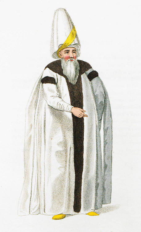 See also Grand Vizier in Ottoman illustrations in albums wearing similar costume to the above.